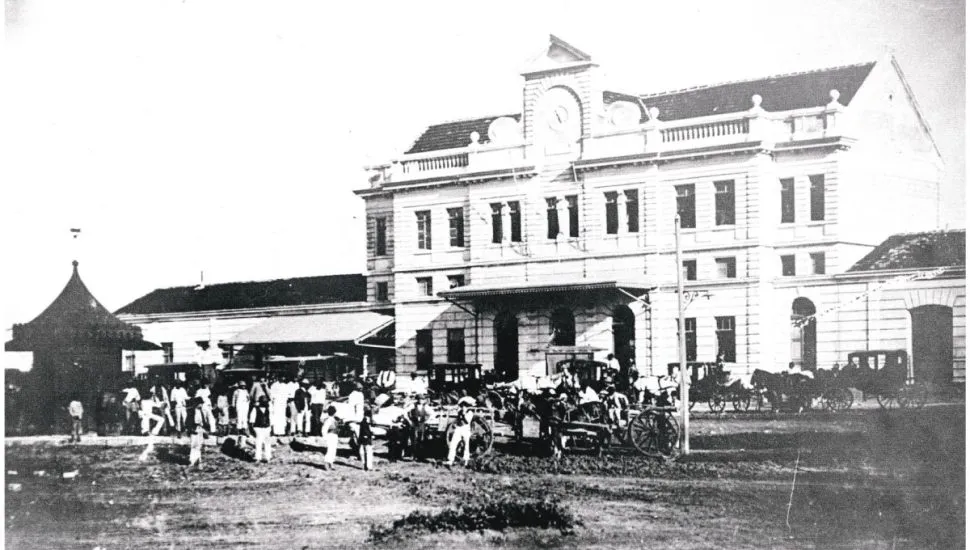 A desta segunda-feira (03) retrata a Estação Ferroviária de Curitiba, vista da Praça Eufrásio Correia. Na imagem, é possível identificar as carroças e carruagens que realizavam o transporte de cargas e de pessoas na época, como também um quiosque de doces e bebidas, à esquerda. O registro é do fim da década de 1890.