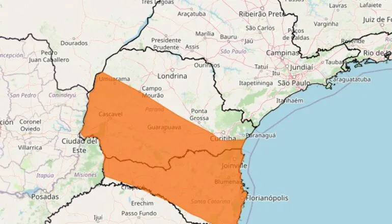 Há, inclusive, um alerta laranja de temporal em vigor, segundo o Inmet, mas que não engloba Curitiba. O alerta é para a metade sul do Paraná e está válido até o meio dia de domingo, pelo menos.