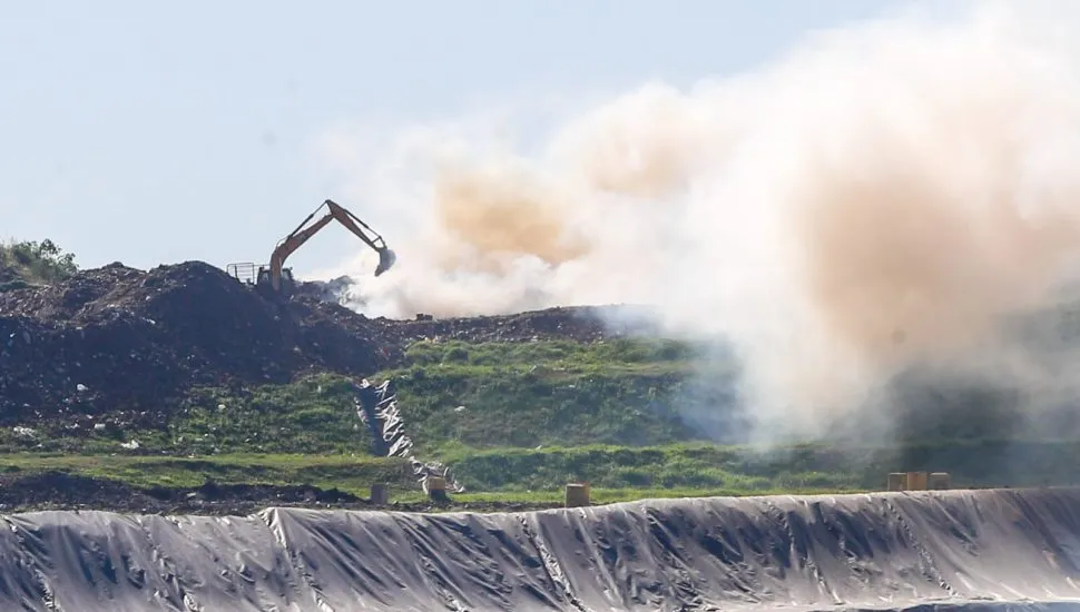 Imagens e vídeos feitos no local mostram máquinas trabalhando em um trecho do aterro enquanto uma grande fumaça se espalha. Assista: