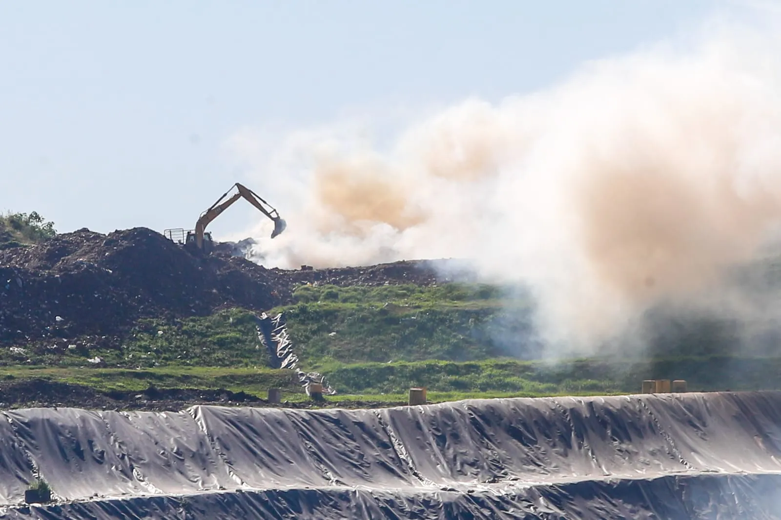Imagens e vídeos feitos no local mostram máquinas trabalhando em um trecho do aterro enquanto uma grande fumaça se espalha. Assista: