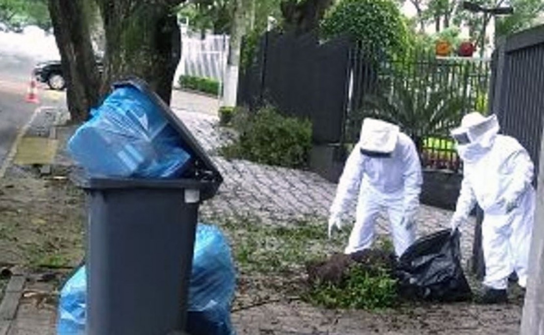 Como não sabia que a espécie tinha ferrões, o síndico do edifício , Jackson Guelmann acionou o Corpo de Bombeiros, que em poucos minutos chegou ao local e retirou as abelhas. A prefeitura também foi acionada para retirar os galhos, mas, às 11h, quase duas horas depois da ocorrência, ainda não havia ido ao endereço recolher os galhos.