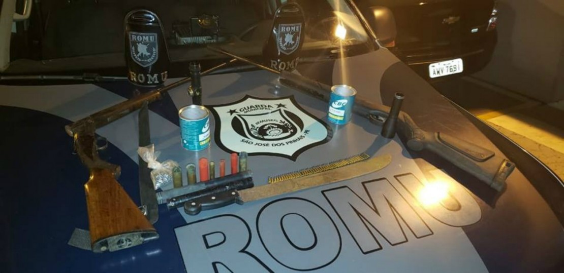 Uma denúncia de agressão de um marido contra a esposa terminou com a apreensão de armas de fogo e materiais de fabricação de munição na madrugada deste domingo (20), em São José dos Pinhais, na Grande Curitiba. Uma equipe da Guarda Municipal (GM) que fazia rondas pela cidade foi abordada pela esposa na rua e a mulher solicitava a presença dos agentes em sua residência. Ao chegar no local, as armas foram localizadas pela GM com a ajuda da própria esposa. O marido já não estava mais na casa, que fica no Centro.