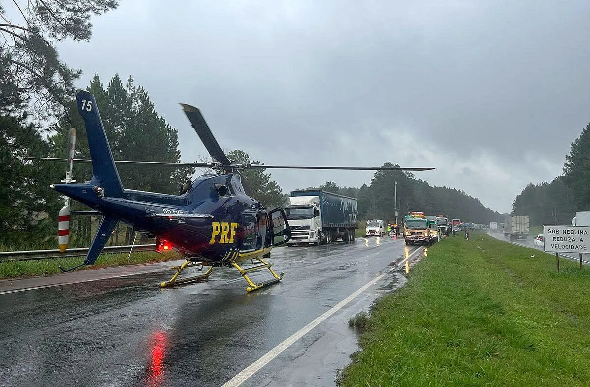 Com o bloqueio da pista, a fila é de 8 quilômetros. O motorista que ficou ferido foi levado ao hospital com a aeronave para o Hospital Angelina Caron, em Campina Grande do Sul . O estado da vítima é considerado grave.