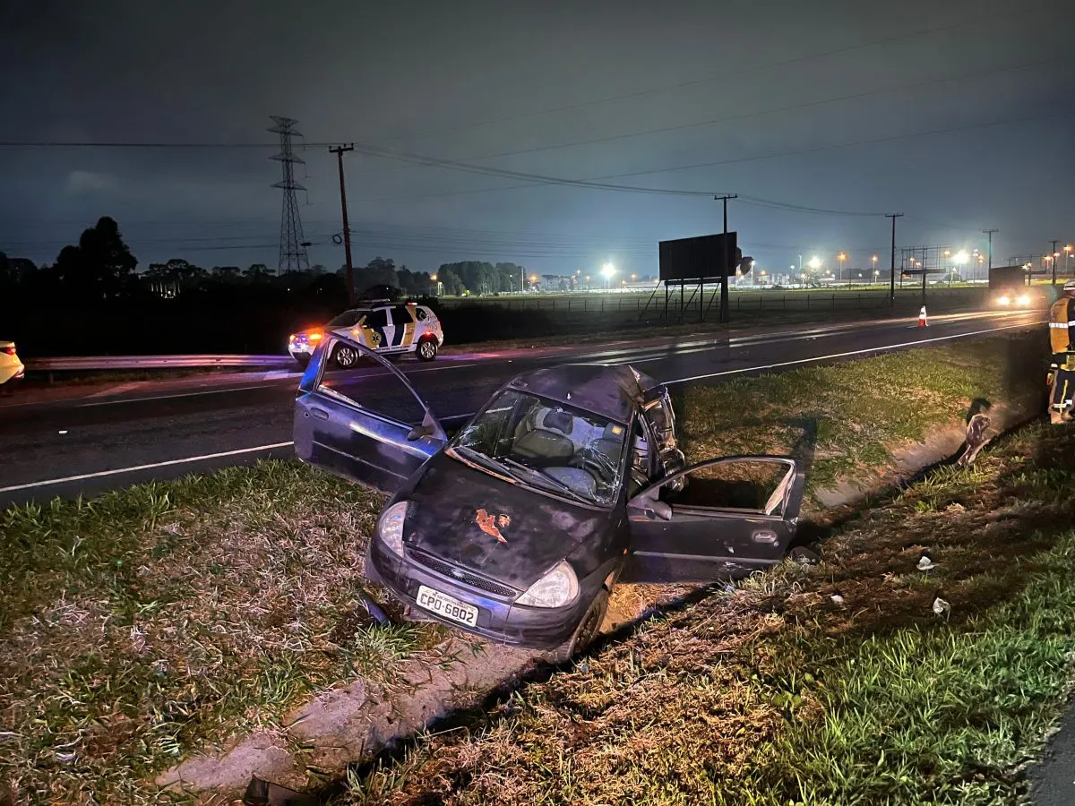 O outro acidente foi por volta das 5h30, já na manhã desta sexta. Um Fusca que trafegava no sentido São José dos Pinhais invadiu a pista contrária e bateu de frente com um carro que estava na pista sentido Curitiba.