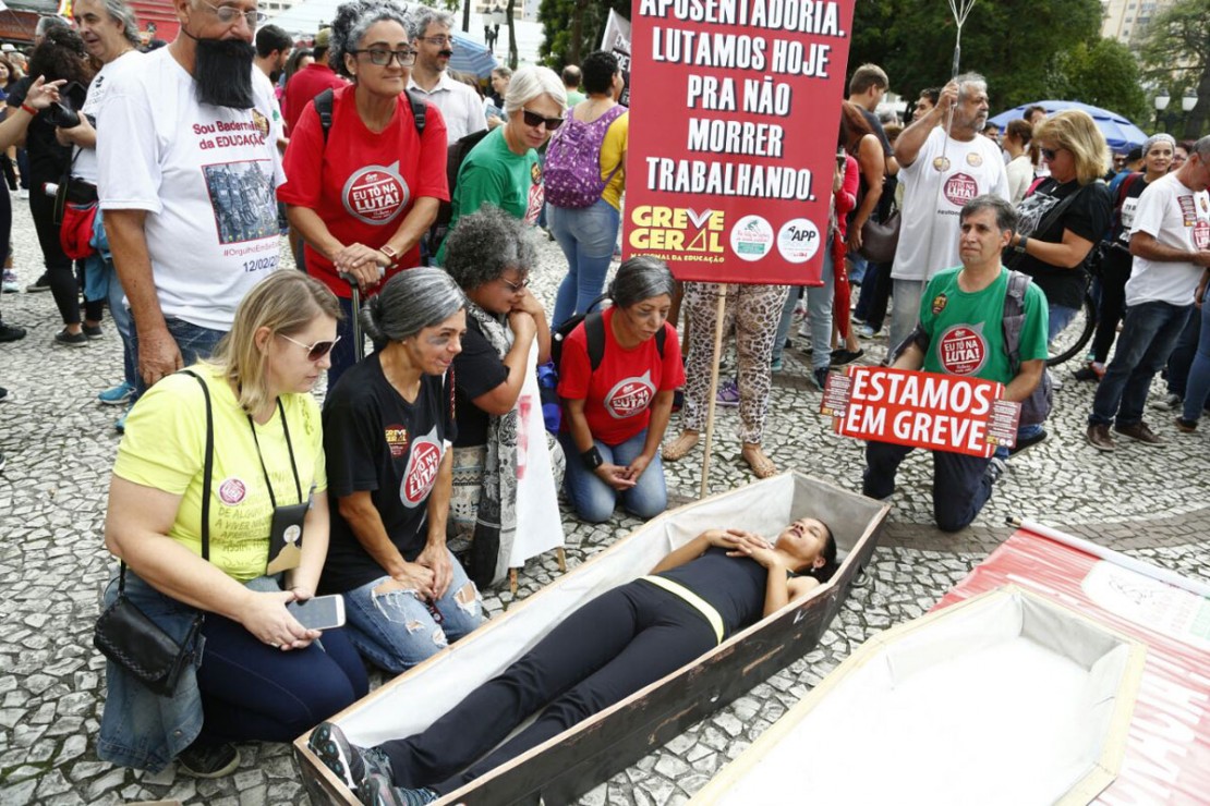 Curitiba amanheceu nesta quarta-feira (15) com serviços parados no transporte, educação e coleta de lixo, entre outras áreas por conta da greve geral que acontece em todo o país nesta quarta-feira (15/03)
