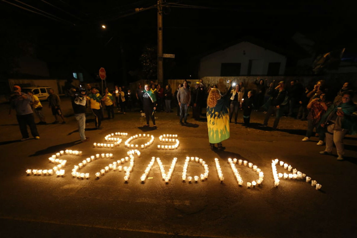 Aproximadamente cem pessoas – entre integrantes de movimentos contra corrupção de Curitiba e moradores do bairro Santa Cândida – participavam de um ato, na noite desta segunda-feira (14), pedindo o fim da vigília feita por apoiadores do ex-presidente Lula na região da Superintendência da Polícia Federal. O petista está preso no local desde 7 de abril. Gritos de “Desocupa Santa Cândida”, buzinaço e foguetes marcavam o ato.