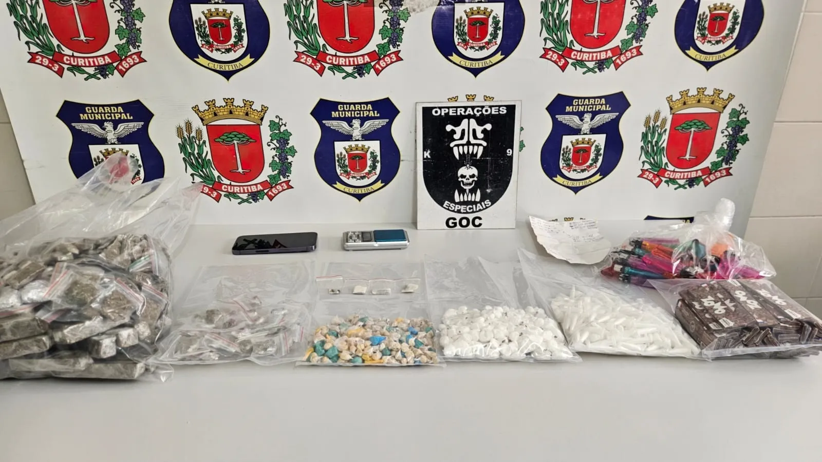 Além das drogas, os agentes também apreenderam 46 embalagens de papel seda para cigarro artesanal e 40 isqueiros. Embora o suspeito não tenha sido localizado, todo o material apreendido foi encaminhado ao 2º Distrito Policial da Polícia Civil do Paraná para os procedimentos legais cabíveis.