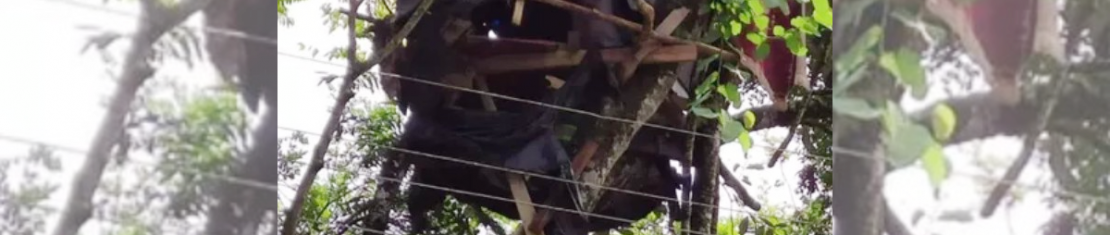 Homem constrói casa na árvore em Curitiba e “recebe” equipe da prefeitura com um café