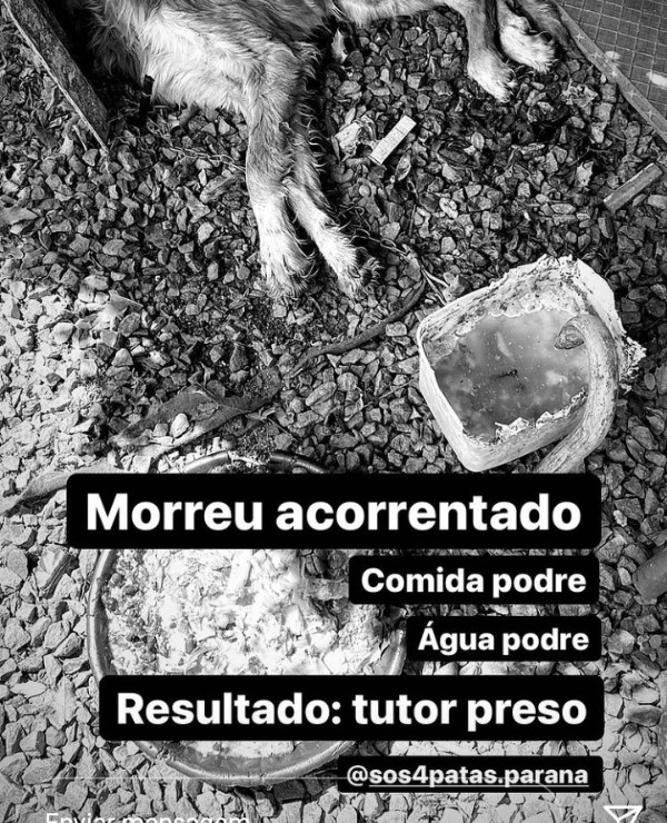 A ocorrência surgiu após uma denúncia que um casal residente em Fazenda Rio Grande estaria deixando o cachorro acorrentado com comida podre e água suja. Ao chegar no local, policias lotados na Delegacia de Proteção ao Meio Ambiente do Paraná (DPMA), da Polícia Civil, já encontraram o animal morto. Em resposta, o tutor disse que iria colocar água ao cão, quando começou o momento tenso. “Ia colocar às 10h da manhã?? Você está preso. Você está preso”, disse o delegado ao homem.