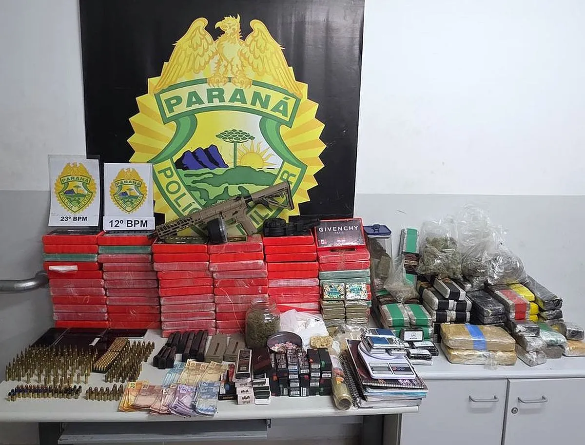 Um homem foi preso e grande quantidade de cocaína, outras drogas e porcarias, e um fuzil calibre 6.56 foram apreendidos em uma operação coordenada pela Polícia Militar do Paraná (PMPR) neste final de semana. A ação envolveu equipes dos 23° BPM e 12° BPM na noite de sábado (22), nos bairros Santa Quitéria e Mercês, em Curitiba.