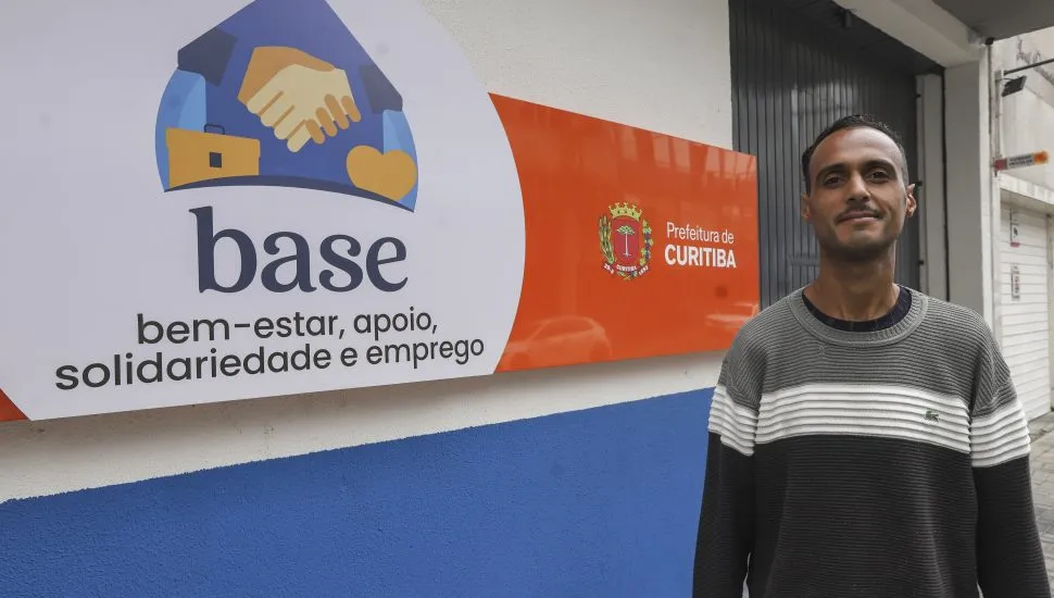 Jefte Cleiton Santos, de 38 anos, conseguiu uma vaga de repositor em supermercado após atendimento no projeto Base, da Prefeitura de Curitiba. Natural de Bebedouro, interior de São Paulo, ele vivia em situação de rua na capital paranaense quando procurou o programa, que reúne serviços de alimentação, saúde, assistência social e intermediação de emprego em um único espaço. O encaminhamento para a vaga aconteceu através do Sine, que funciona dentro do local.