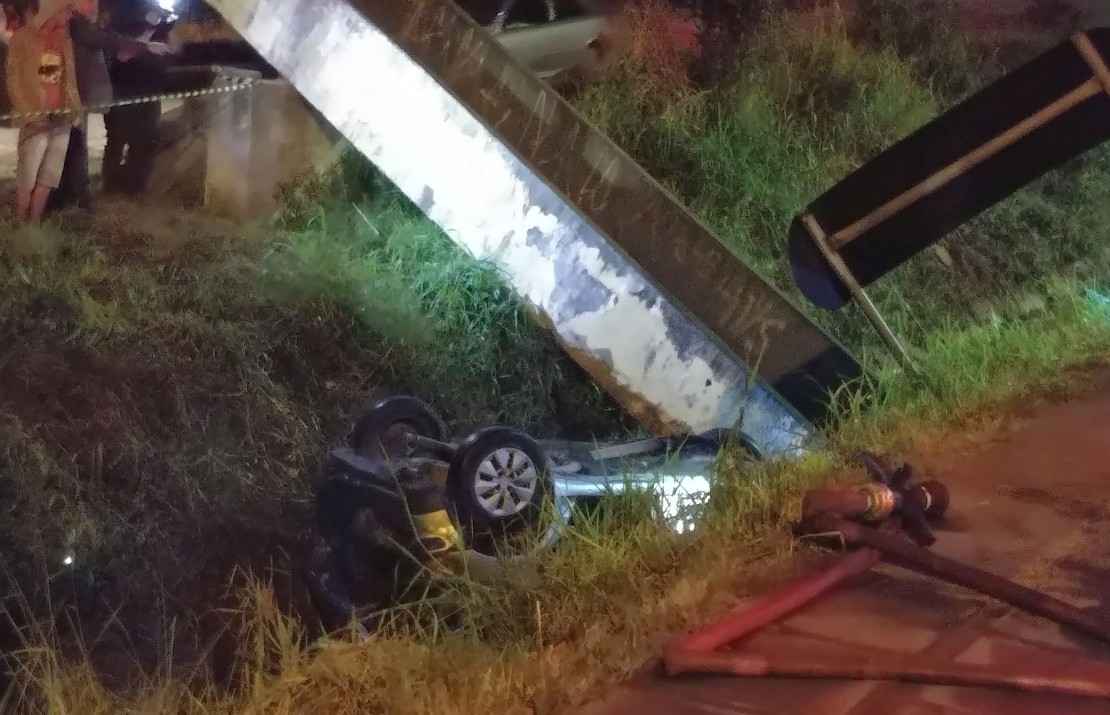 Um homem morreu após perder o controle do carro, derrubar uma ponte de concreto e capotar dentro de um córrego no bairro Hauer, em Curitiba. O grave acidente aconteceu por volta das 23h desta segunda-feira (28).