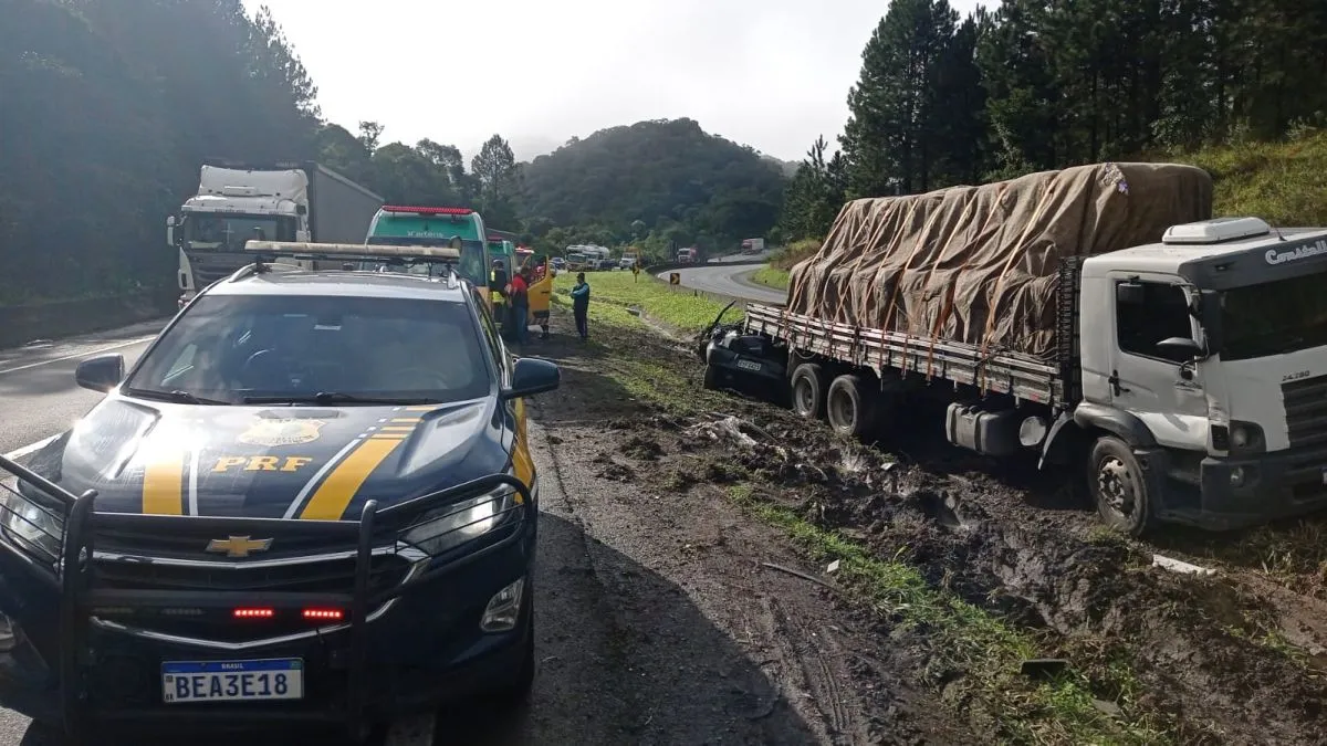 Com a pista molhada, o veículo que passava pelo local acabou perdendo o controle, saindo da pista e bateu contra a traseira do caminhão acidentado no dia anterior. O trânsito na região exige atenção dos motoristas. A PRF orienta que os viajantes redobrem os cuidados.