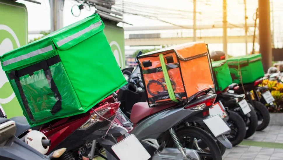 Imagem mostra motos e mochilas de entregadores
