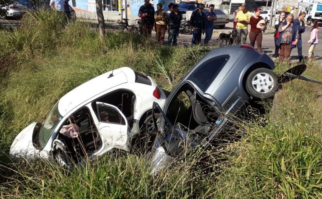 Conforme a polícia, um dos dois veículos acabou passando direto e não houve tempo suficiente de evitar a colisão. Apesar do susto e de os carros terem caído dentro da valeta, a mulher foi socorrida sem ferimentos graves.