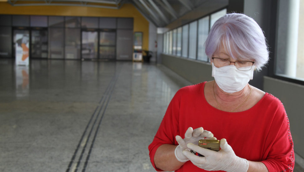 O medo pode ser medido pelo fluxo de compras em uma farmácia instalada na área de embarque do aeroporto. De acordo com um dos funcionários, o movimento caiu bruscamente. Em compensação, a venda de itens de proteção aumentou, como de álcool gel de 100 ml (a R$ 10 o frasco). Somente em máscaras, a farmácia vendeu mais de mil unidades (R$ 4) nos últimos dois dias. Antes, a venda desse ítem “quase não existia”, diz.