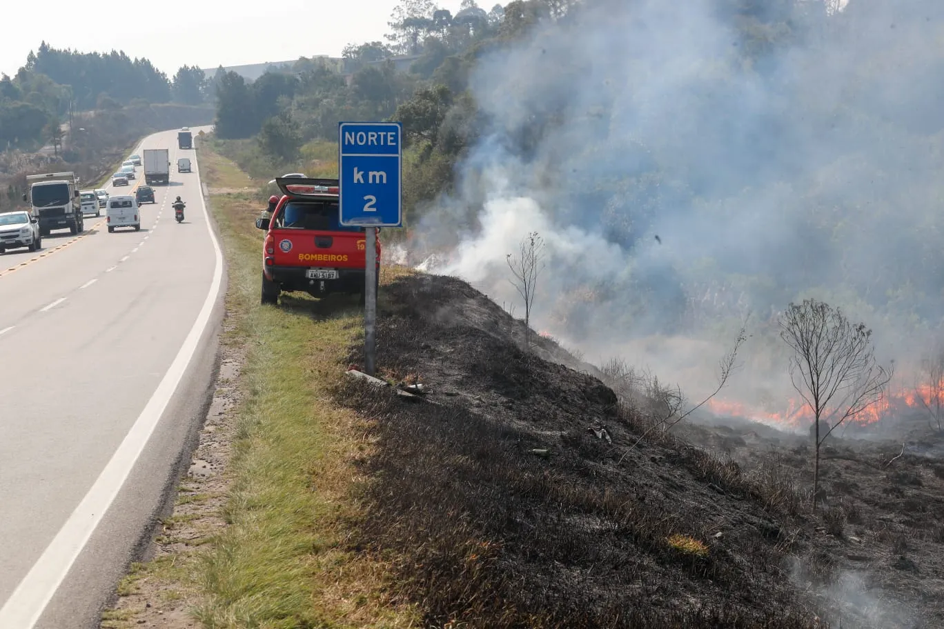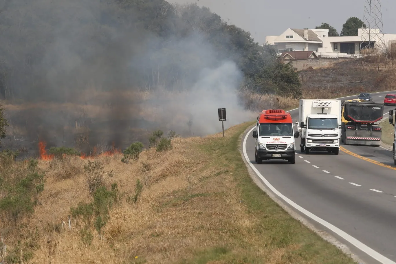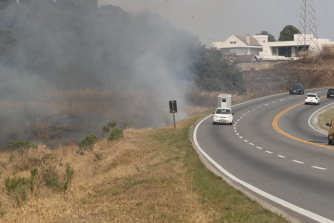 Um incêndio na vegetação que fica ao lado do Contorno Norte, em Curitiba, foi registrado na tarde desta sexta-feira (16). Muita fumaça se espalhou pelo local, atrapalhando a visão dos motoristas que estavam passando pela rodovia.