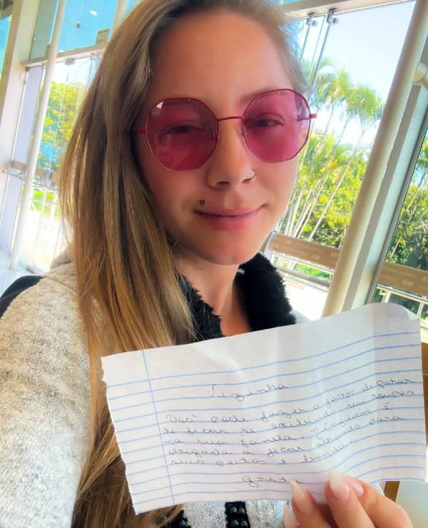 O texto do bilhete é direto e anônimo: “Vizinha, você pode fazer o favor de parar de ficar se exibindo sem roupas na sua janela. Ninguém é obrigado a ficar olhando para seus peitos e bunda. Grata”.