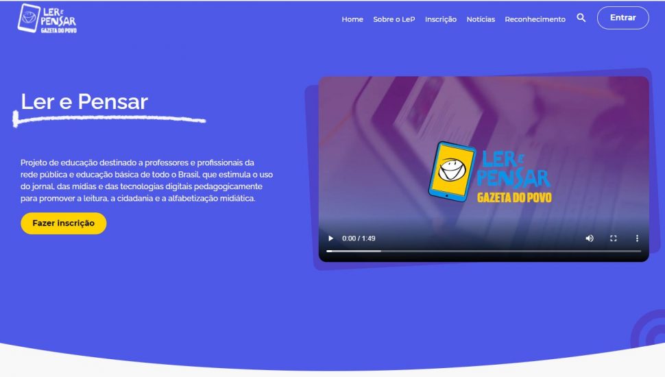 O Ler e Pensar, realizado pela Gazeta do Povo em parceria com o Instituto GRPCOM é um projeto que incentiva a leitura e a educação midiática e digital em escolas públicas de todo o Brasil. Leia mais em https://www.lerepensar.com.br/
