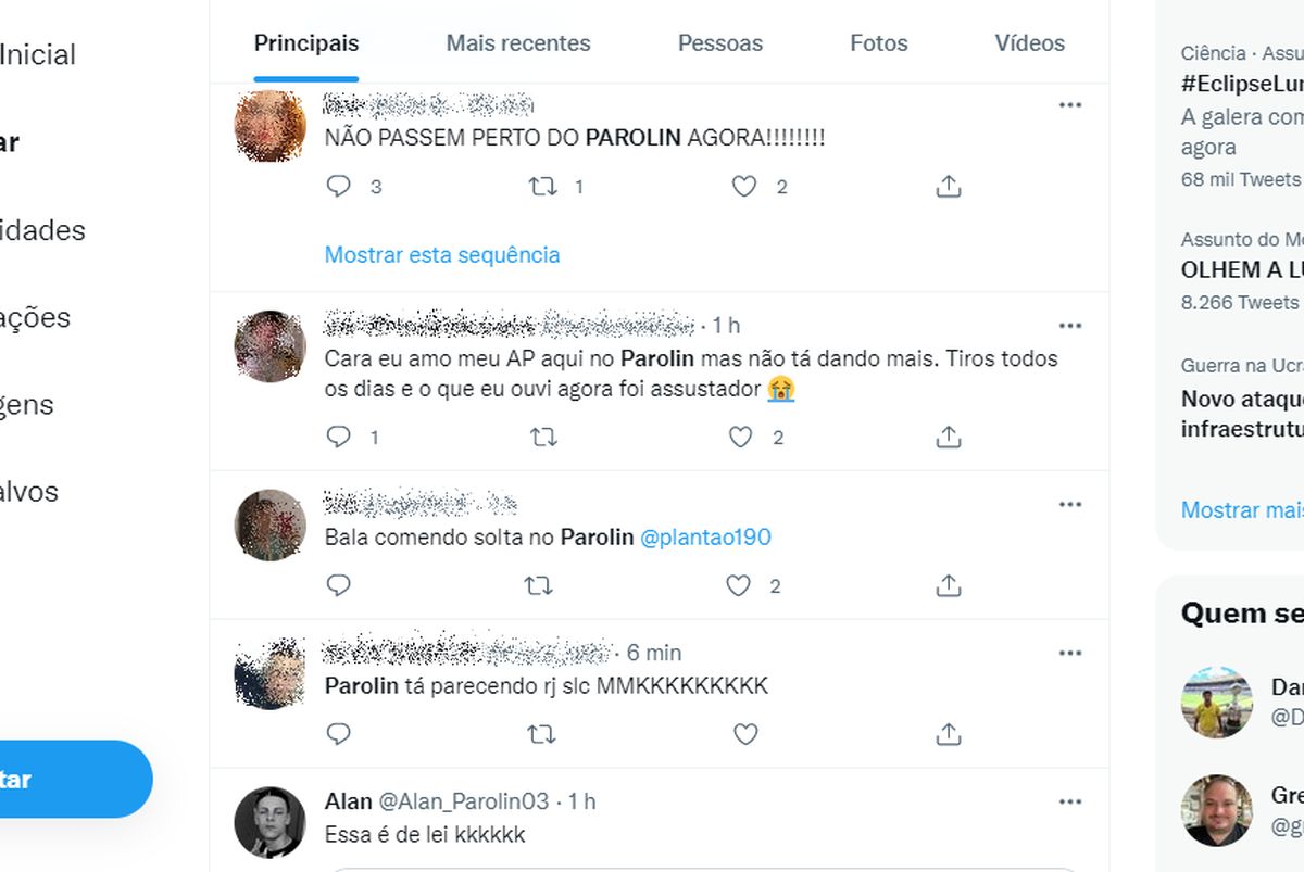 “Cara eu amo meu AP aqui no Parolin, mas não tá dando mais. Tiros todos os dias e o que eu ouvi agora foi assustador”, disse um dos internautas no Twitter. “Parolin tá parecendo o Rio de Janeiro”, disse outro. “Avisem quem puder. Não apssem pelo Parolin agora”, alertou uma outra usuária da rede social.