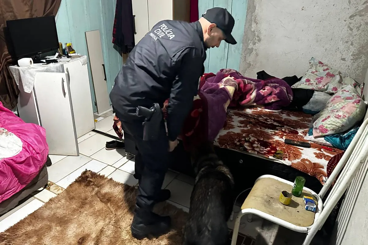 O principal suspeito foi localizado em Campina Grande do Sul, na Região Metropolitana de Curitiba. As investigações seguem em andamento para identificar e prender os demais envolvidos no crime. A ação conta com o apoio de cães farejadores da PCPR.
