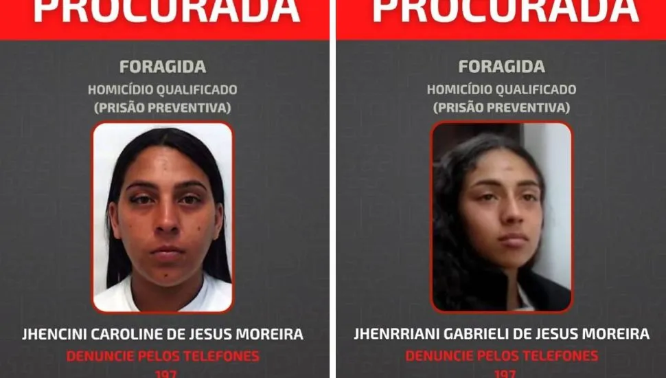Jhencini Caroline de Jesus Moreira e Jhenrriani Grabrieli de Jesus Moreira são consideradas foragidas da Polícia