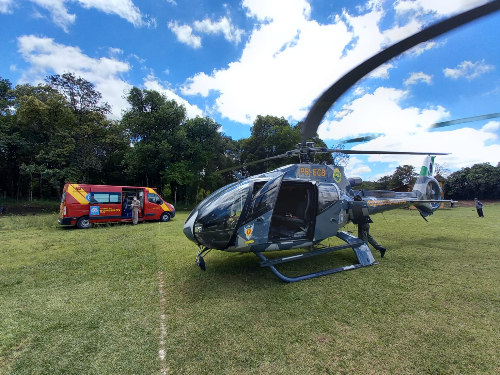 A aeronave Falcão 03, que estava pousada no Bacacheri, bairro de Curitiba, se deslocou rapidamente para o bairro Tranqueira, de Almirante Tamandaré. A vítima foi atendida inicialmente pelo Corpo de Bombeiros, foi estabilizada pela equipe médica do Falcão 03 e transportada até o Hospital Angelina Caron de helicóptero.