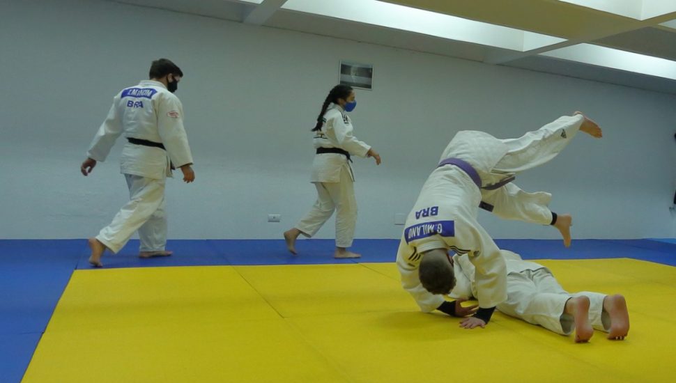 Atletas de judô com potencial olímpico que treinam em Curitiba têm usado a criatividade para se manter ativos durante a pandemia de coronavírus (covid-19). Com a mudança do alerta da bandeira laranja para a amarela na capital, no dia 18 de agosto (que na última sexta-feira voltou a ficar laranja), os esportes de contato como o judô puderam retomar as atividades seguindo as regras sanitárias de controle da doença, como uso de máscara, álcool em gel e distanciamento social. Com a retomada dos treinos presenciais na Associação Atlética do Banco do Brasil (AABB), no Tarumã, a equipe de professores da modalidade usa até câmera de pneu para manter em forma os cerca de 50 atletas do grupo.
