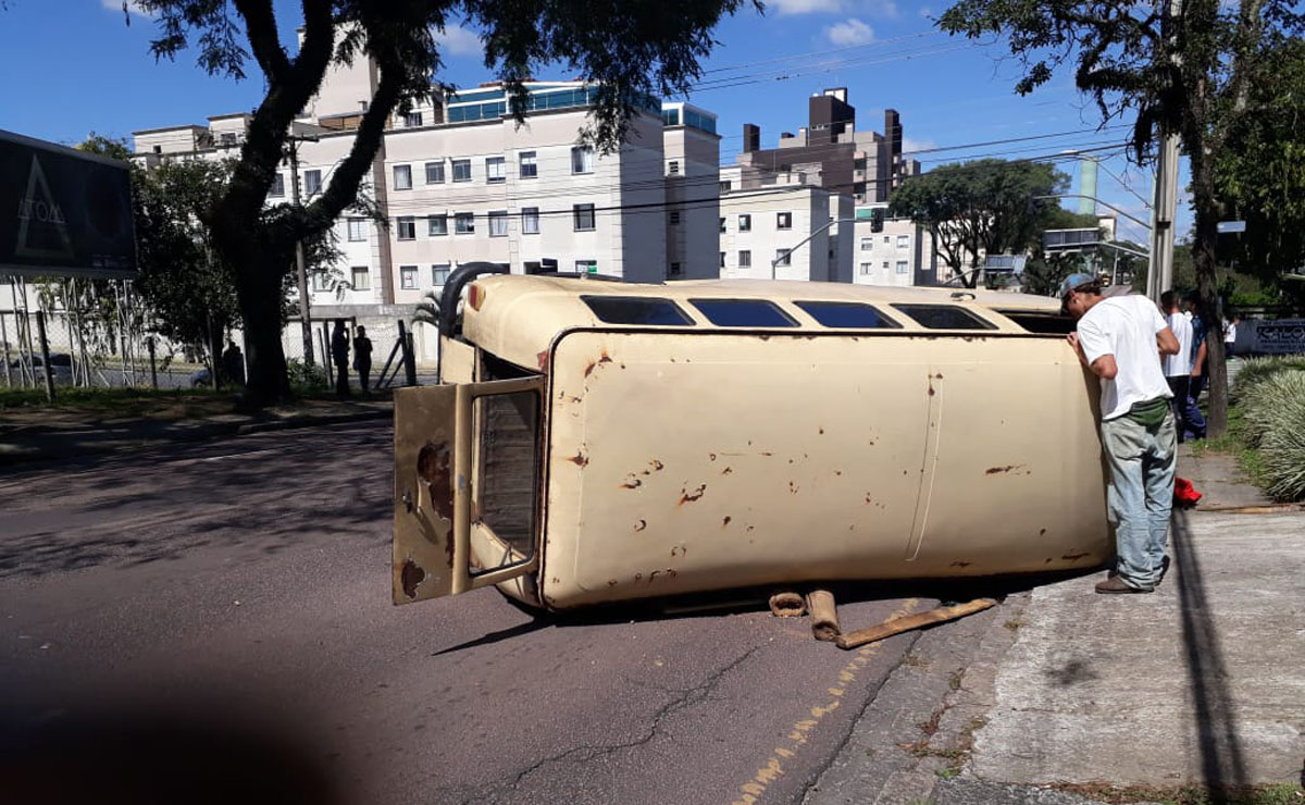 Um acidente entre dois veículos bloqueou no início da tarde desta quarta-feira (19), duas das quatro faixas do sentido Centro da rua André Ferreira Barbosa, a via rápida do Pinheirinho, em Curitiba. Um deles, uma Kombi, tombou após a colisão e ficou atravessada na pista.