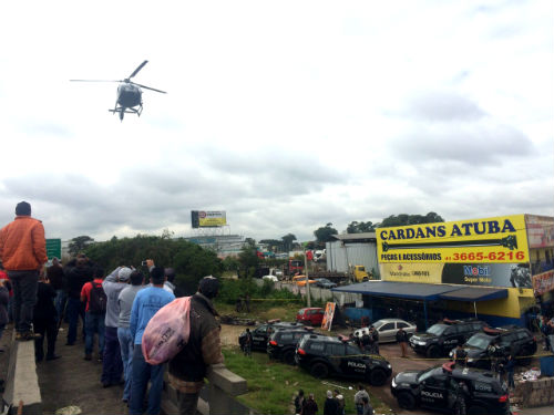 O outro suspeito, que vestia camisa listrada, conseguiu fugir. O helicóptero da PM fez buscas, mas até o momento ele não foi localizado. “Temos informações que um indivíduo com roupas molhadas e sujas de barro e de lama havia passado correndo pela Vila Zumbi, em Colombo”, disse Sergio. “Temos duas guarnições lá fazendo o cerco, para ver se logramos êxito nessa prisão”.