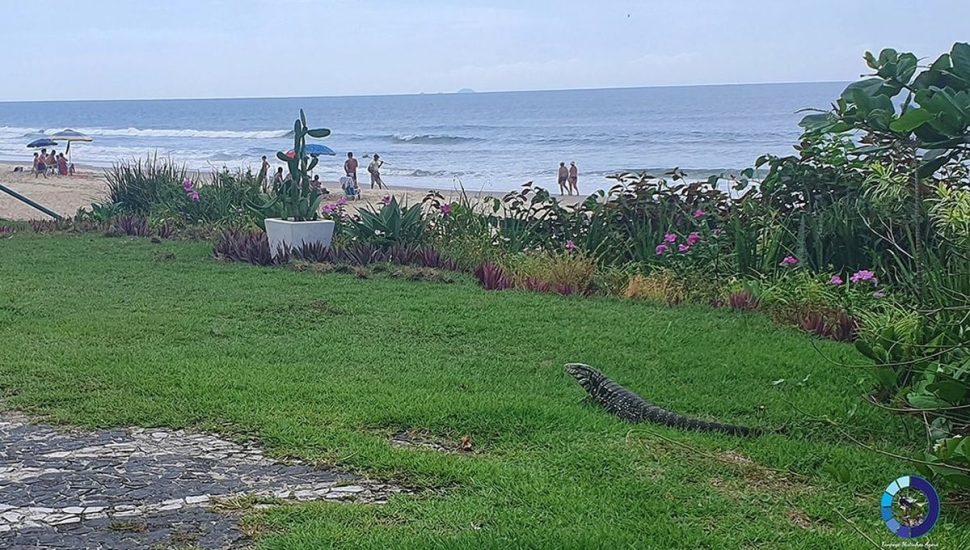 Você já usou ou ouviu alguém dizendo a expressão “Lagartear“? Do tipo: “Vou dar uma lagarteada no sol”? Então, a palavra tem até definição no dicionário Michaelis: “Pôr-se ao sol, como o lagarto, para aquecer-se”. Eis que nesta quinta-feira (03) pela manhã o bonitão aí da foto e do vídeo abaixo resolveu aparecer para aproveitar os últimos dias de Verão na praia de Caiobá, em Matinhos, no Litoral do Paraná.