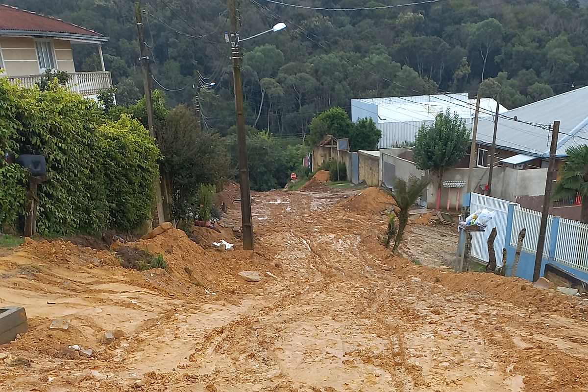 A prefeitura também explicou que o serviço não continuou com as chuvas por causa do declive acentuado da rua. Segundo a administração, a máquina de operação não consegue chegar até o fim do declive para depois retornar.