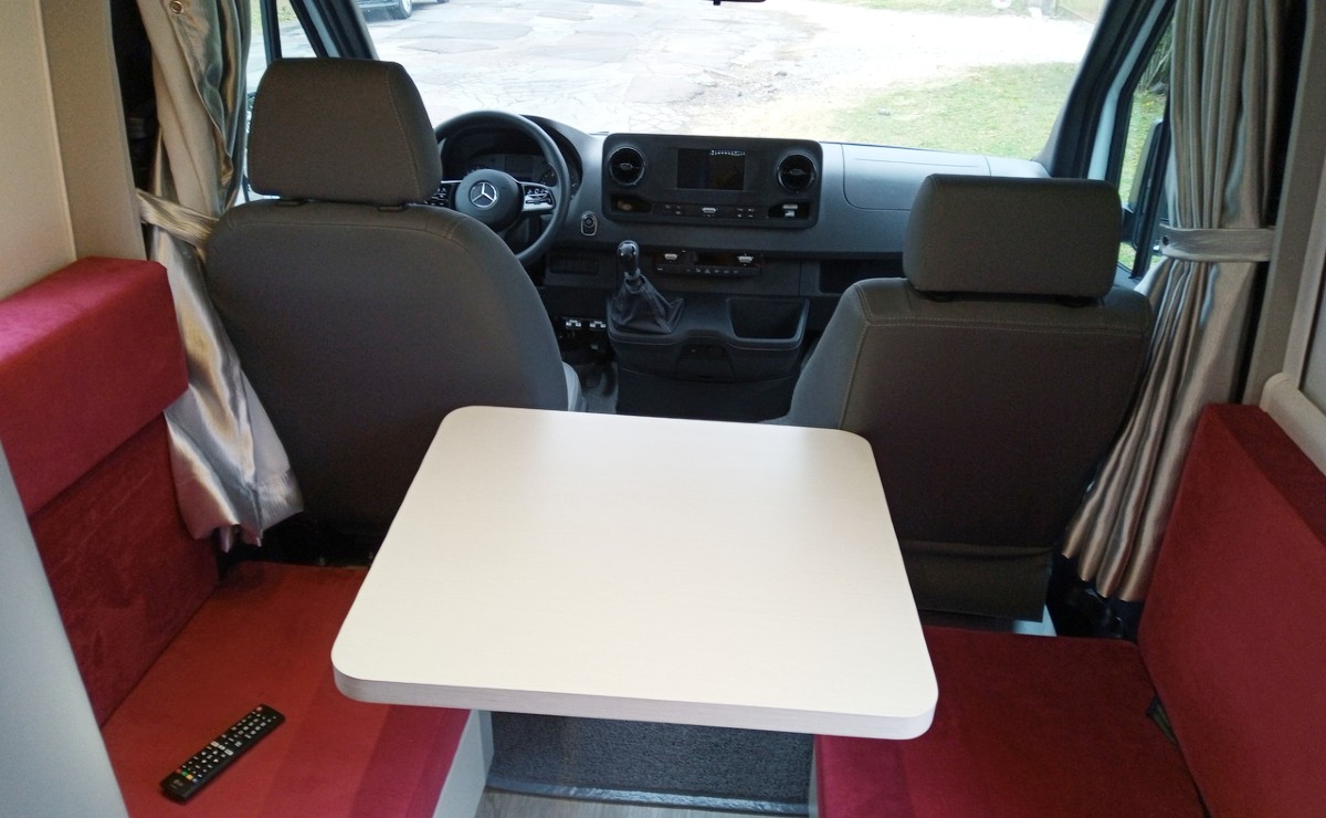 A transformação do motorhome do casal Baron foi em uma Mercedes-Benz Sprinter 415-CDI. Percebe-se que todos os detalhes foram realizados ao gosto dos proprietários. Frigobar, televisores, fogão, pias, cama, luzes de LED, ar condicionado, cortinas, banheiro, micro-ondas, som de última geração, câmera de ré e até energia solar.
