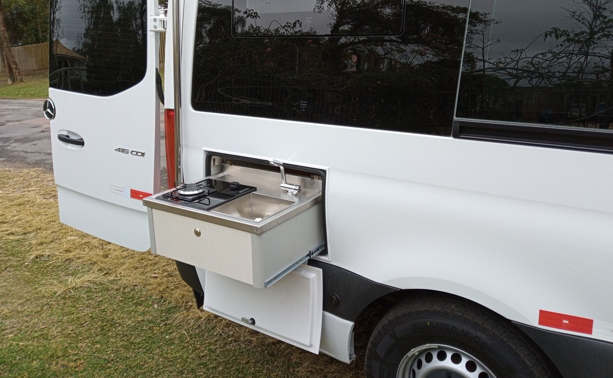 “Foi um trabalho espetacular e colocaram a cor vermelha que amamos em vários pontos do carro. A torneira ficou a nossa cara como todo o restante. Digo que quando começamos não foi fácil, mas indico para todos que o sonho pode ser alcançado. Aprovo demais que os jovens entrem nessa onda e apostem isso. Eu mesmo sou jovem”, brincou Marli de 65 anos. Veja os detalhes do motorhome do casal Baron: