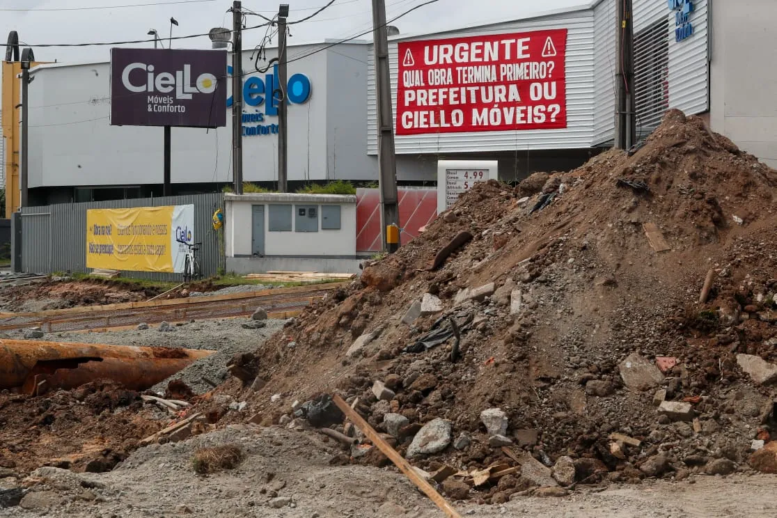 Reinaugura neste sábado (8) a mega loja da Ciello Móveis e Conforto do bairro Tarumã, em Curitiba. Localizada na Avenida Victor Ferreira do Amaral, a loja chama a atenção de quem passa por ali não pela construção em si, mas por uma faixa com tom de galhofa afixada na sua fachada: “Urgente. Qual obra termina primeiro? Prefeitura ou Ciello Móveis”.
