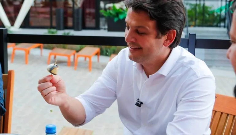 Como já é tradição nas entrevistas da Tribuna com o prefeito, o momento final foi reservado para um desafio gastronômico: a degustação do tradicional rollmops, petisco feito com filés de arenque ou sardinha enrolados em cebolas. O suspense pairou no “estúdio” improvisado no deck externo do Bar Canabenta, comandado pelo chef e empresário Délio Canabrava: será que Pimentel enfrentou a iguaria típica de Curitiba?