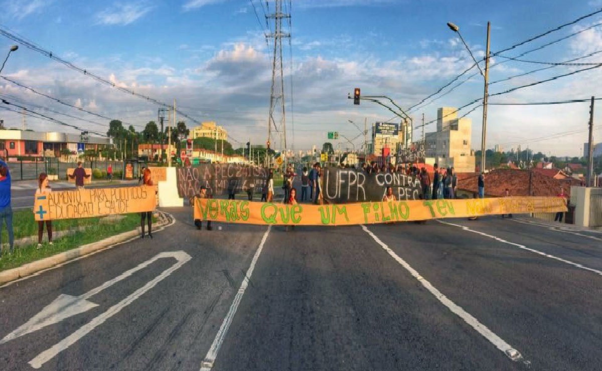 Uma manifestação de estudantes da Universidade Federal do Paraná (UFPR) bloqueou a Avenida Comendador Franco (Avenida das Torres) e atrasou muita gente no começo da manhã desta quarta-feira (9). Os jovens protestam contra a reforma no Ensino Médio e a PEC do Teto de Gastos.