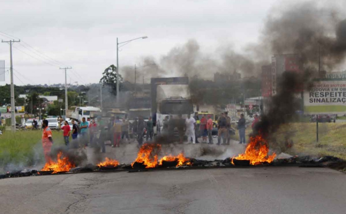 Uma manifestação de vendedores de gás bloqueou um trecho da Linha Verde Norte, no quilômetro 123 da BR-476, sentido São Paulo, próximo ao Hospital Vita, no começo da tarde desta sexta-feira (26).