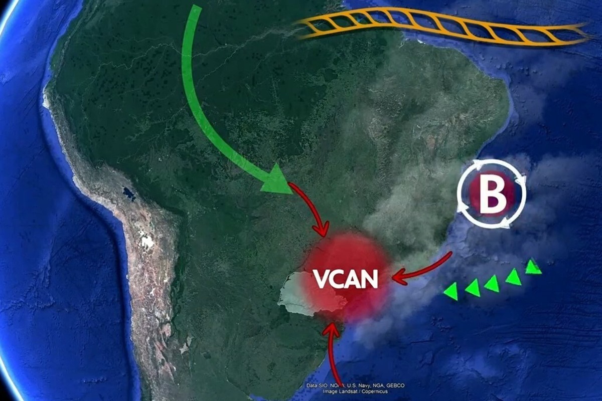 Segundo a meteorologista, sob estas condições é que uma “máquina de chuva” é formada. “Forma uma engrenagem, essa umidade toda que vem do mar é puxada pelo vórtice para níveis mais altos da atmosfera formando essas nuvens de chuva. É uma máquina, uma engrenagem que não vai parar agora. Nessa quarta-feira, essa ‘máquina de fazer chuva’ vai continuar atuando a todo vapor. E ainda há risco de chuva forte e volumosa sobre as mesmas áreas que estão encharcadas”, diz.