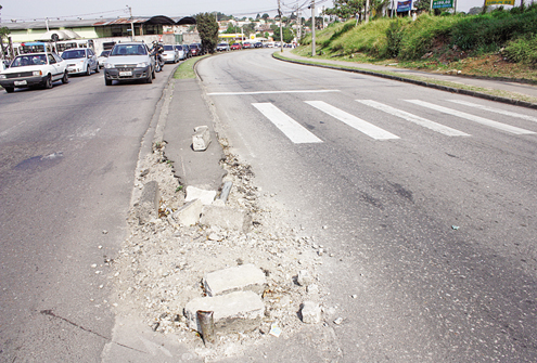 A falta da placa de sinalização para indicar conversão proibida, no cruzamento das ruas Emanoel Voluz e José Egidio Martins, no Pinheirinho, contribuiu para um acidente de trânsito, que deixou duas pessoas feridas, no começo da tarde de ontem. De acordo com funcionários da Urbs, a placa foi arrancada em outra colisão e não foi reposta.