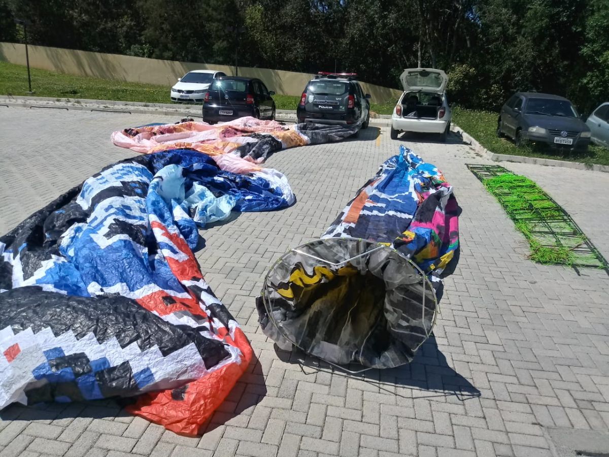A Polícia Militar (PMPR) apreendeu neste domingo (17), uma balão de 10 metros de comprimento em Araucária, na Região Metropolitana de Curitiba. Três homens foram presos por serem os responsáveis por produzir o objeto que pode provocar grandes transtornos ao cair em residências ou empresas.