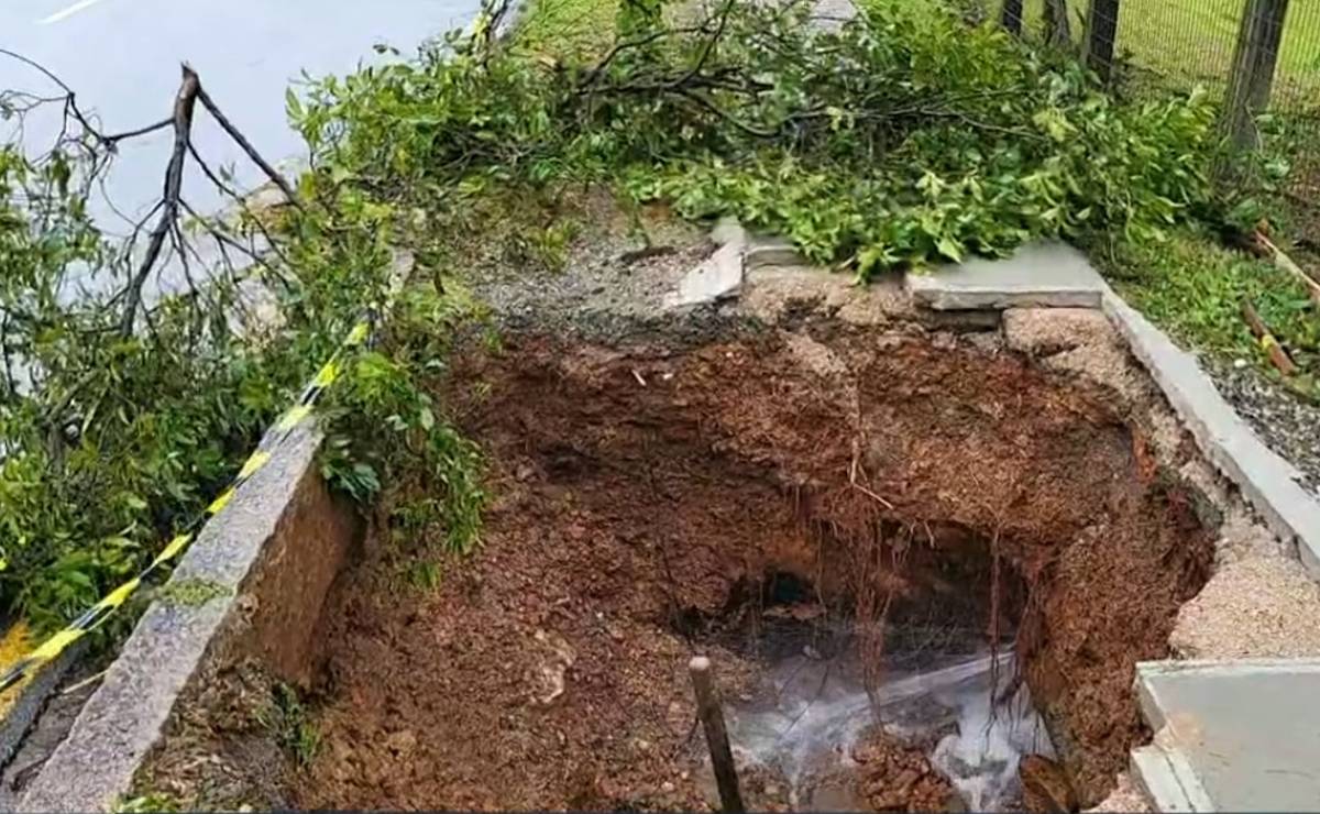 Segundo informações de técnicos da Sanepar, a intensidade da chuva originou o buraco. Moradores chegaram a bloquear a calçada no começo da manhã com faixas e galhos para evitar acidentes.