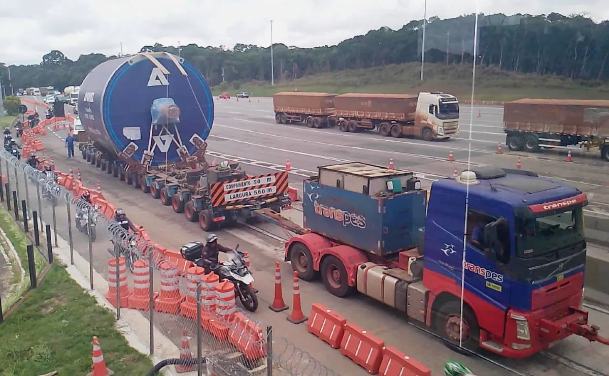 A carga especial mede 50 metros, tem altura de 6,70 metros e largura de 5,60 metros. Uma equipe da Polícia Rodoviária Federal (PRF) e da EPR Litoral Pioneiro, concessionária que administra o trecho, estão acompanhando o deslocamento.