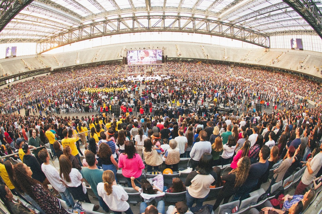A abertura dos portões do mega culto na Arena da Baixada, em Curitiba, será às 14 horas e o encerramento está previsto para às 22 horas.