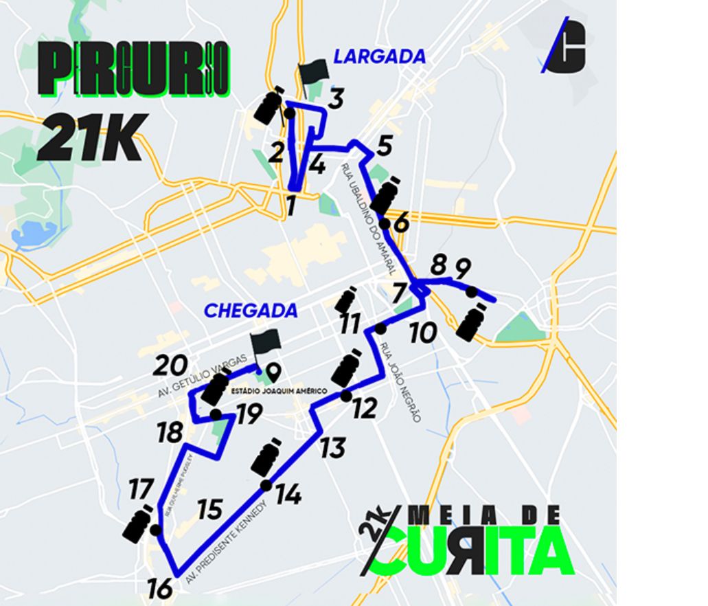 A largada acontece na Praça Nossa Senhora de Salette, no Centro Cívico, e a chegada na Praça Afonso Botelho, no Água Verde. Além do percurso de 21 km também haverá corridas de 5 km e 10 km. São esperados 5 mil participantes.