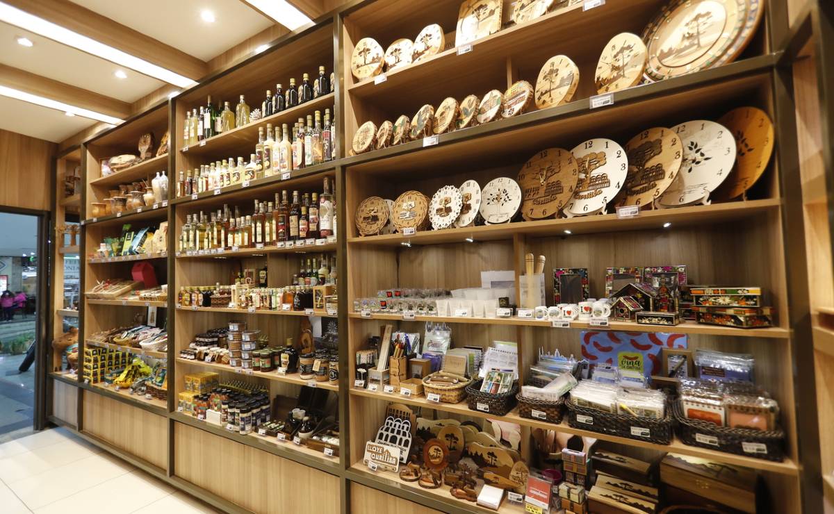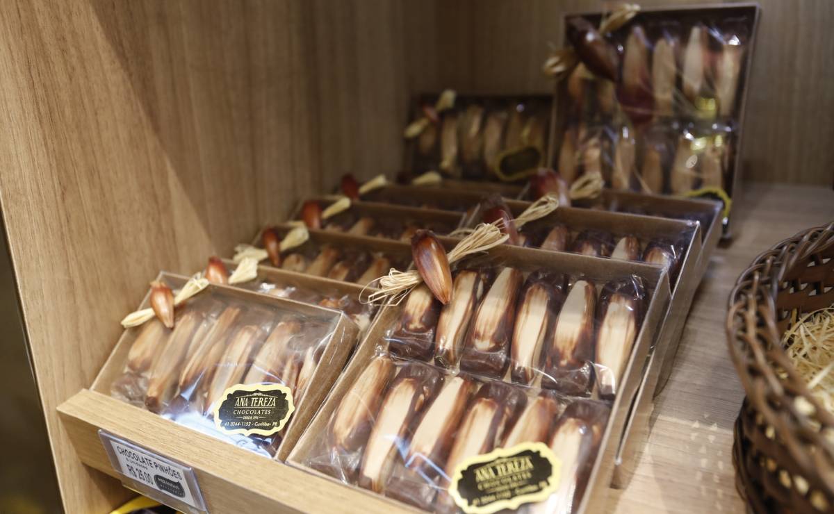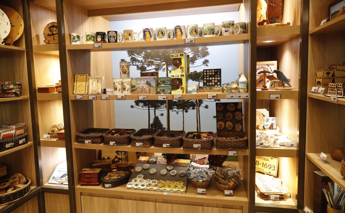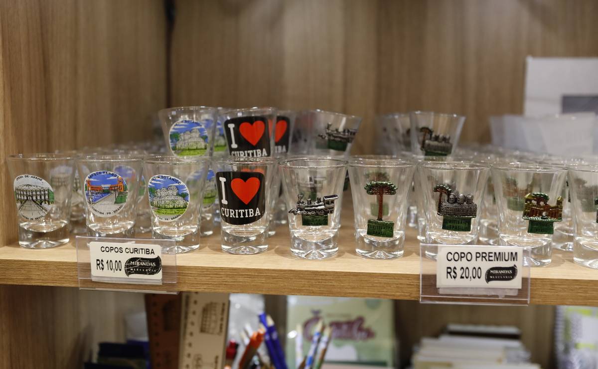 Ainda na Mirandas Mercearia, é impossível não notar chocolates em forma de pinhão, balas de banana de Antonina, a cataia de Morretes, relógios estilizados de Araucária e camisas alusivas às paisagens curitibanas como a Rosácea Paranista, arte-símbolo de Curitiba.