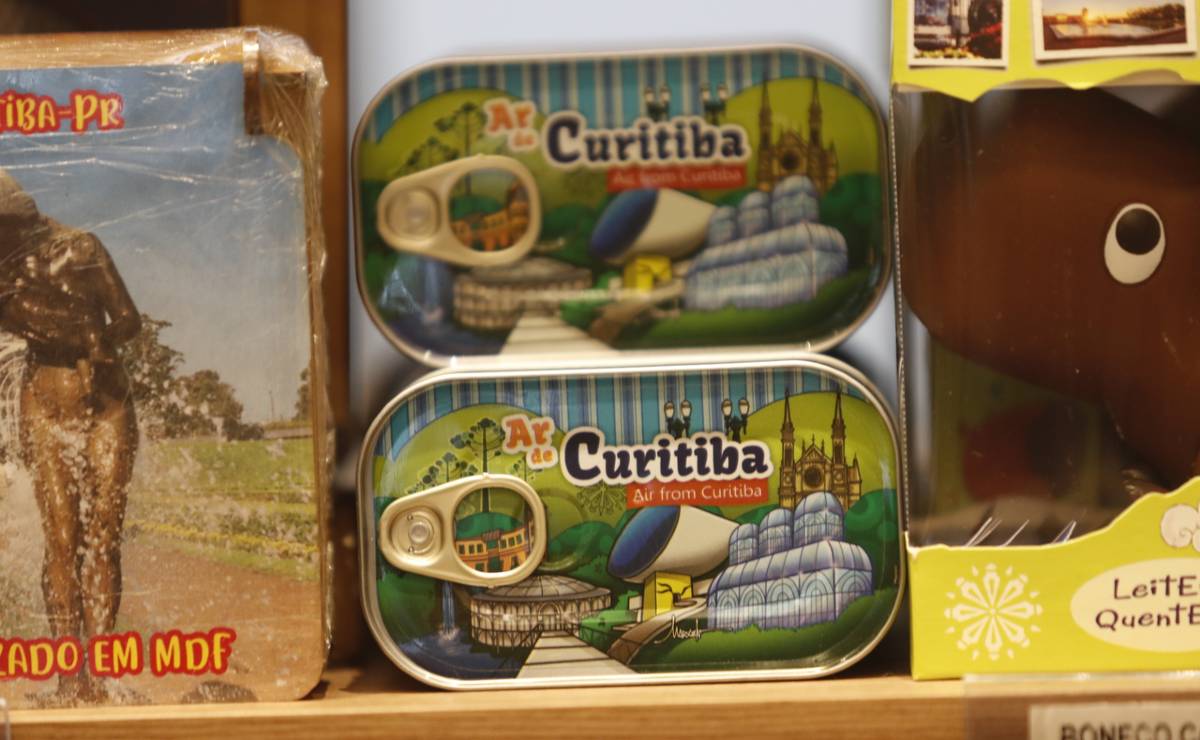Outra opção para levar o vento ou o ar é dentro de uma caixinha de sardinha. É uma lembrança ilustrando os principais pontos de Curitiba como o Teatro Guaíra, Passeio Púbico, Largo da Ordem, Jardim Botânico e Parques (R$ 15 a unidade). “Chama atenção de todos, eu mesmo conheci esses produtos pela internet ou mesmo em feiras do Sebrae. A lata de ar vendeu muito bem, mas o fornecedor vai parar de produzir. Temos as últimas unidades”, reforçou Paulo.