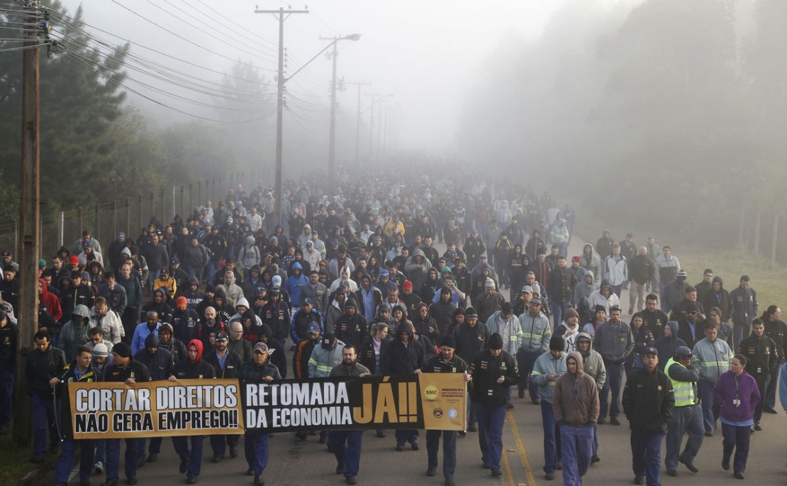 Com o tema “Cortar direitos não gera emprego! Retomada econômica já!”, centenas de trabalhadores aproveitaram a troca de turno para fazer a manifestação na marginal da BR-277. Segundo o sindicato, o objetivo era o de formar uma frente de atuação para pressionar o governo a adotar medidas que acelerem a economia e retomem o emprego.