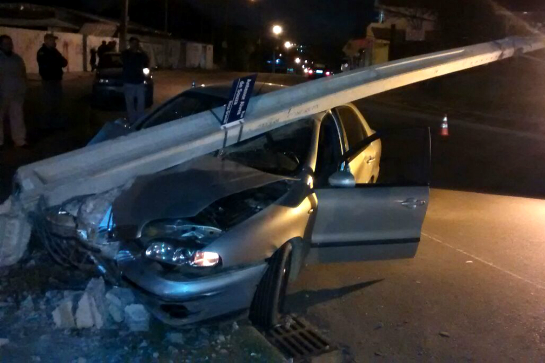 O motorista de um Fiat Marea derrubou um poste da Rua Antenor Alves de Souza, próximo ao cruzamento com a Rua João Alberti, no bairro Roça Grande, em Colombo, Região Metropolitana de Curitiba (RMC). O motorista, um homem de 58 anos, não ficou ferido.