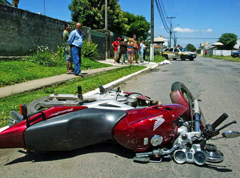 O motociclista Paulo Sérgio Nogueira, 29 anos, morreu na hora ao cair da moto Twister placa ANU-7902, na Rua João Bonat, quase esquina com a Rua Laudelino Ferreira Lopes, no Novo Mundo, às 11h30 de ontem.